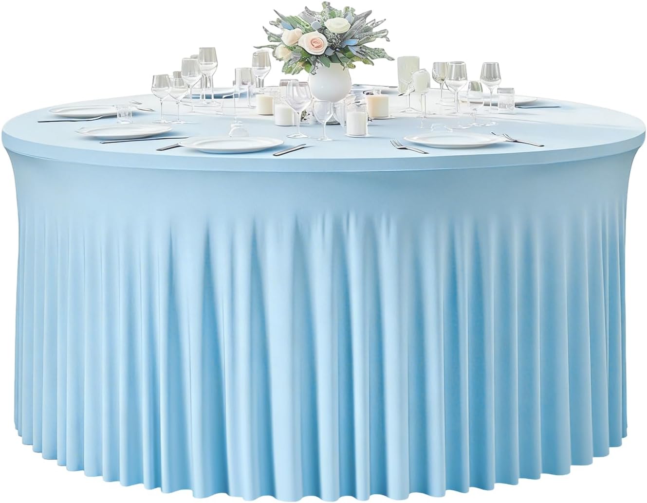 Designed for standard 60 inch round tables, this round fabric tablecloth provides a smooth, fitted look that instantly upgrades your table setting. The round tablecloth 120 inch size wraps securely around the table, functioning as a reliable table cloth round cover with full coverage and a clean silhouette. Unlike loose round cloth tablecloths, this fitted design stays in place without slipping, helping your table look neat and well-organized from every angle. The stretchy fabric creates a tailored appearance that feels intentional and professional, making setup quicker and stress-free. Whether used as an elegant table cloth for weddings and banquets or a practical table cloths round solution for parties and everyday dining, it helps your space feel prepared and comfortable. Choosing the right tablecloth means focusing less on setup and more on the moments that matter. This round tablecloth brings stability, comfort, and a refined finish to your table, helping guests feel welcome and your space feel thoughtfully styled. From special celebrations to daily use, this round fabric tablecloth supports a calm, organized atmosphere—so you can enjoy your time with family and friends, not the setup.