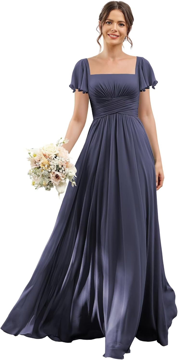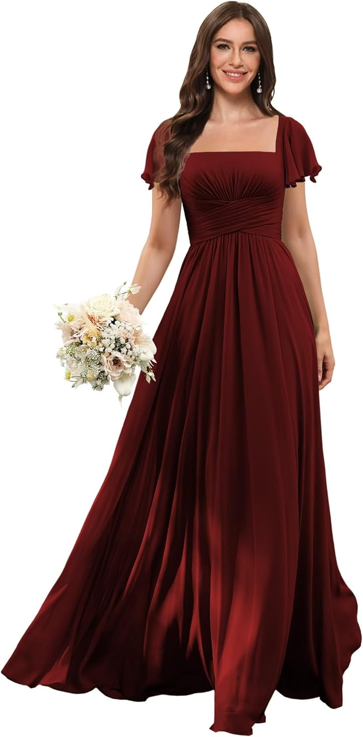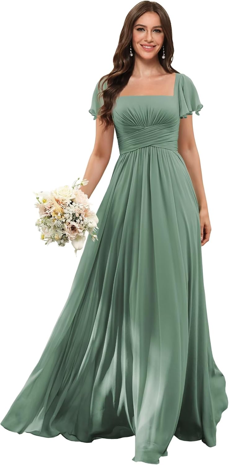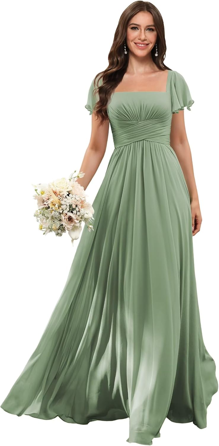 | Embellishment Feature | A Line, Floor Length, Ruffle, Short Sleeves, Square Neck |