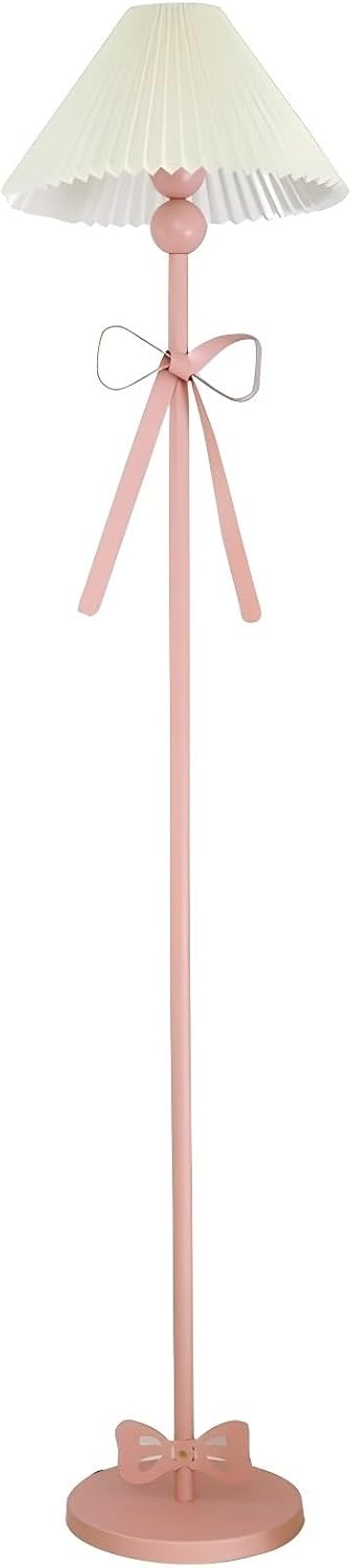 Ainedi Pink Floor Lamp, Modern Corner Tall Lamp with Pleated Fabric Shade, E26 Base, Cute Bow Standing Lamp for Living Room Bedroom Girl's Room Decor