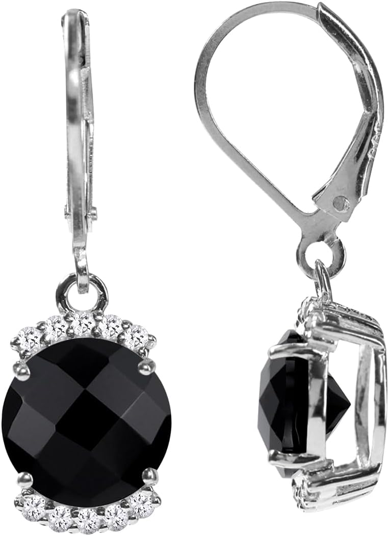 Silvershake 9MM Round Shape Gemstone White Gold Plated or Yellow Gold Plated 925 Sterling Silver Leverback Dangle Earrings Jewelry for Women