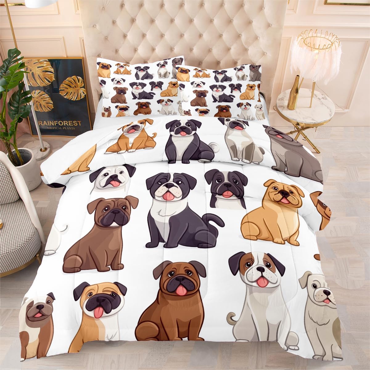 Twin size: 1 Comforter (68" x 90") and 1 Pillowcase (20" x 30"). Comforter The weight 3.97 pounds Full size: 1 Comforter (79"x90") and 2 PillowcaseS (20" x 30"). The weight 4.63 pounds Queen size: 1 Comforter (90" x 90") and 2 Pillowcases (20" x 30").The weight 5.3 pounds King size: 1 Comforter (104" x 90") and 2 Pillowcases (20" x 36"). The weight 6.4 pounds Comforter