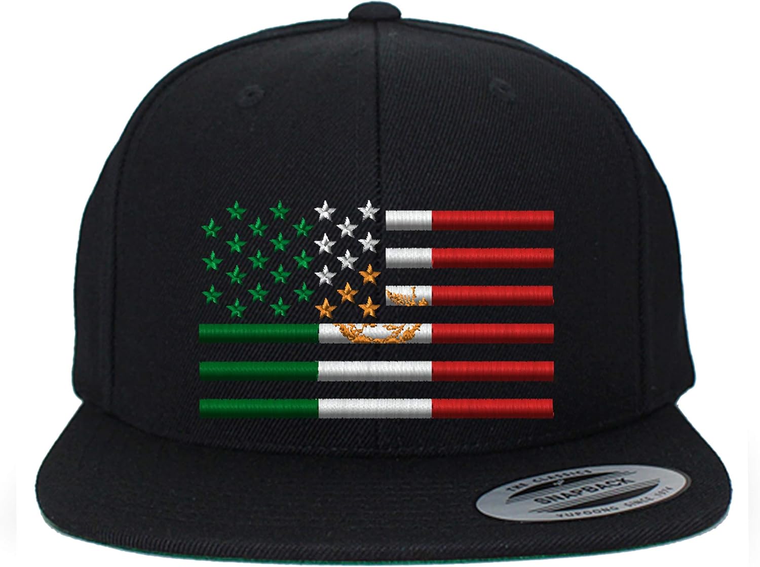 6089M classic Snapback with USA and MEXICO flag combination design embroidered on the front.